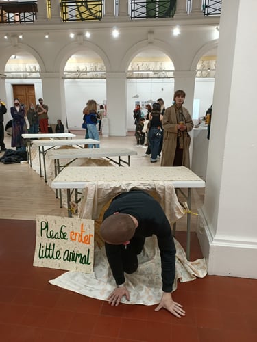 This was my first experiment with tunnels, play & participatory sculpture. Crucially, it led to the development of my spider grotto later in the year - I repurposed this very fabric for its tunnels. This piece was very scrappy, put together last minute, and focused on the audience experience rather than aesthetics. I'd like to do more of this!